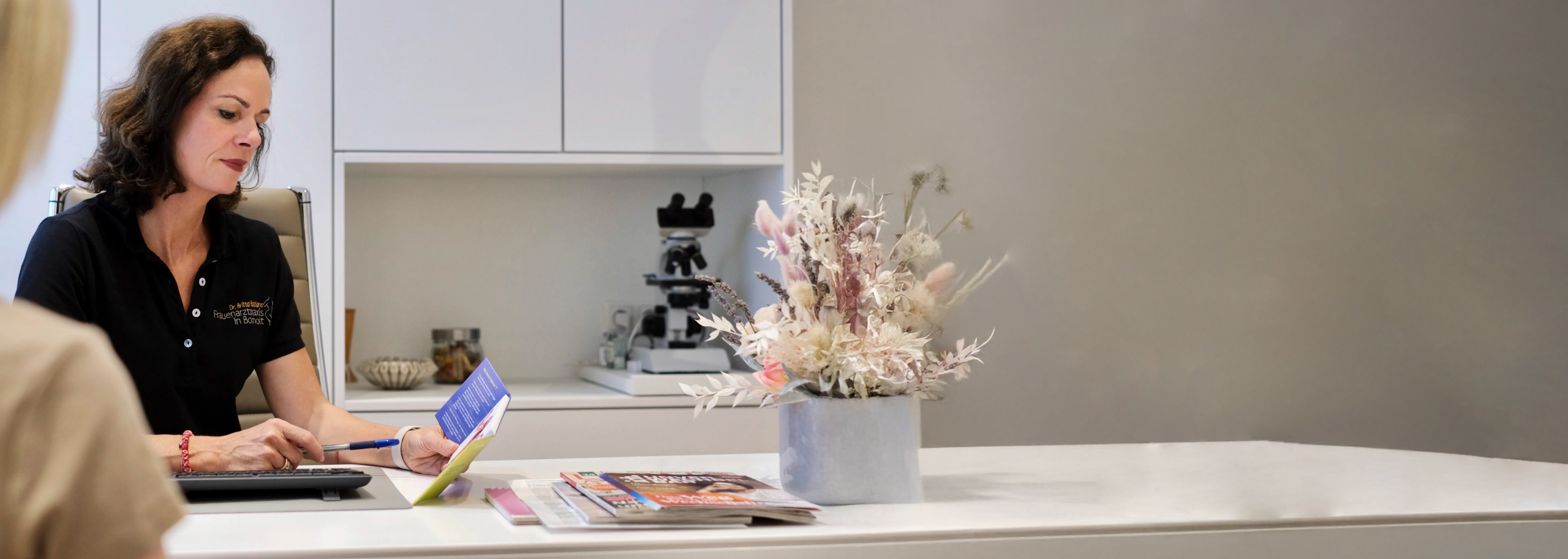 Gegen Wechseljahrsbeschwerden gibt es verschiedene Therapieansätze. Häufig zeigenbereits pflanzliche Präparate eine Wirkung. Alternativ gibt es die sogenannte Hormontherapie. Diese Behandlung gleicht den Hormonmangel durch die gezielte Gabe von Östrogen und Gestagen aus, um Beschwerden zu lindern. In einem persönlichen Gespräch erkläre ich Ihnen alle Behandlungsoptionen.